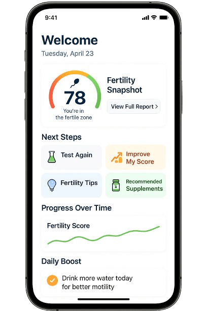 The dashboard shows easy-to-read charts, habit trends, and friendly tips to help you stay on track toward better fertility and family goals.